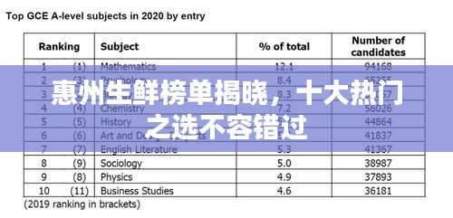 惠州,这座美丽的海滨城市,以其得天独厚的地理环境和丰富的海洋资源,成为了广东省乃至全国知名的生鲜美食之都,海鲜种类繁多,新鲜美味,深受食客们的喜爱,本文将为您揭晓惠州生鲜排名前十名,带您领略惠州生鲜的魅力。