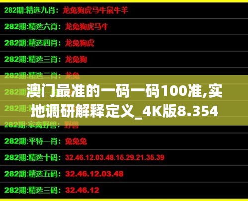 澳门特别行政区政府一贯重视政策的研究与实施,确保政策既符合澳门的实际情况,又能够推动澳门社会的繁荣发展。近期,我们针对“澳门最准的一码一码100准,实地调研解释定义_4K版8.354”这一政策文件进行了详尽的实地调研,并在此基础上解释了政策的定义。以下是政策文件的详细内容。