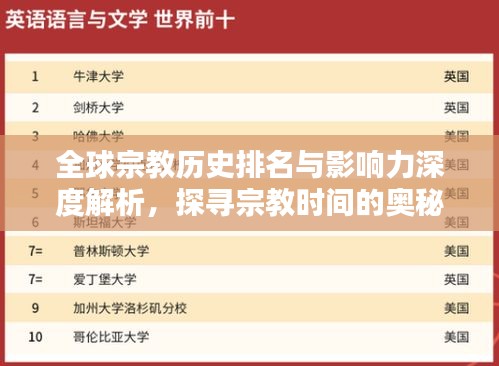 在全球多元文化的背景下,宗教作为人类社会的重要组成部分,其历史源远流长,影响深远,本文将探讨全世界宗教的时间排名及其影响力,以揭示宗教在人类历史长河中的地位和作用。