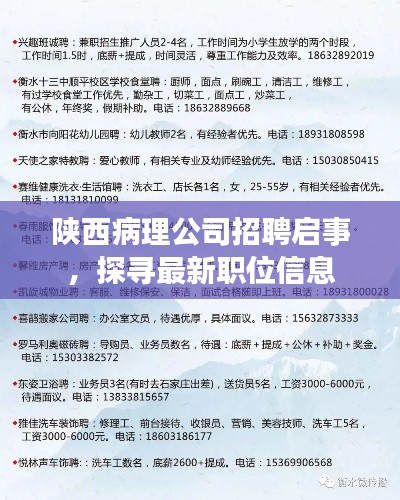 随着医疗行业的快速发展,病理学作为医学领域的重要分支,其需求也在日益增长,陕西地区,以其深厚的历史文化底蕴和不断壮大的经济力量,吸引了众多病理公司的目光,本文将围绕“陕西病理公司招聘信息最新”这一主题,为广大求职者提供详尽的病理公司招聘信息及其相关内容。