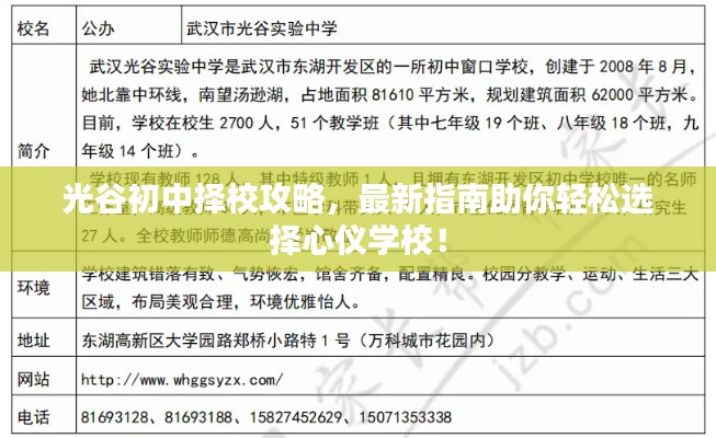 随着教育的日益重要,家长们对于孩子的教育选择也越来越重视,初中是孩子成长的关键时期,选择一个合适的学校对孩子的未来发展至关重要,本文将为您提供关于光谷初中择校的最新攻略,帮助家长和孩子们做出明智的选择。