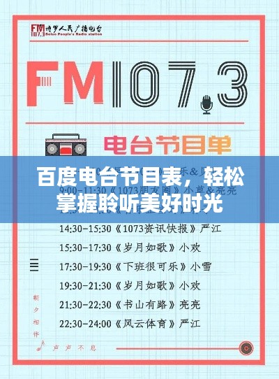 在这个快节奏的时代,我们越来越依赖互联网来获取各种信息,电台节目表作为我们日常生活中的一部分,也不例外,我们将通过百度搜索功能,轻松获取今天的电台节目表,一起聆听美好时光,让我们一起来看看今天的“百度一下电台节目表”。