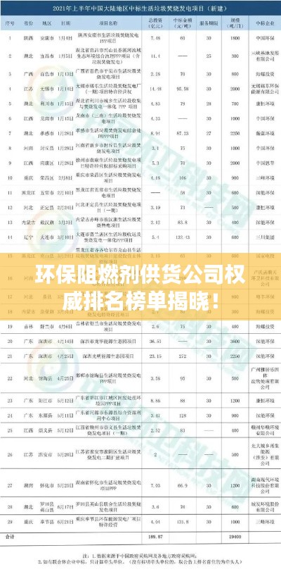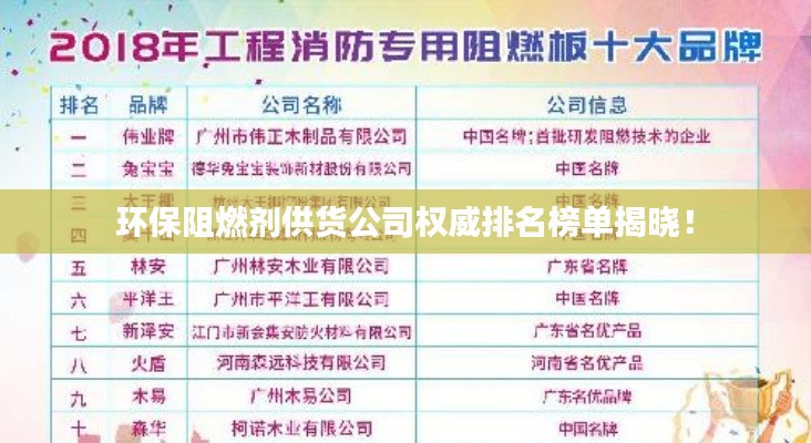 随着环保意识的日益增强,阻燃剂作为重要的化工材料,其环保性能越来越受到人们的关注,在众多供货公司中,哪些公司在环保阻燃剂的供应方面表现出色呢?下面将为您介绍环保阻燃剂供货公司的排名。