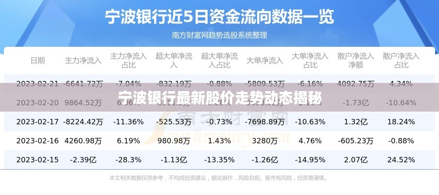 宁波银行是中国的一家知名金融机构,其股价动态一直是投资者关注的热点,本文将为您介绍宁波银行今日的最新股价情况。