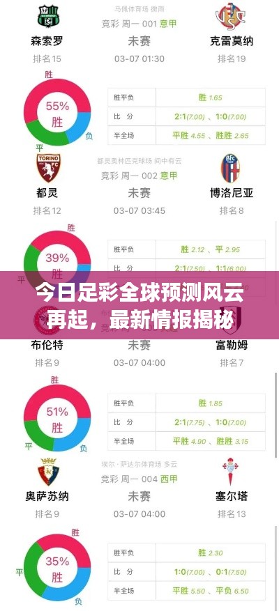 随着足球运动的普及和足彩市场的日益繁荣,越来越多的人开始关注足彩预测,我们将为您带来最新的足彩世界预测消息,让您在投注前掌握第一手资讯。