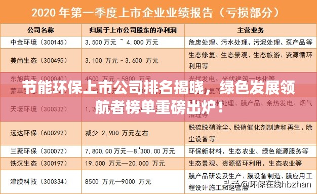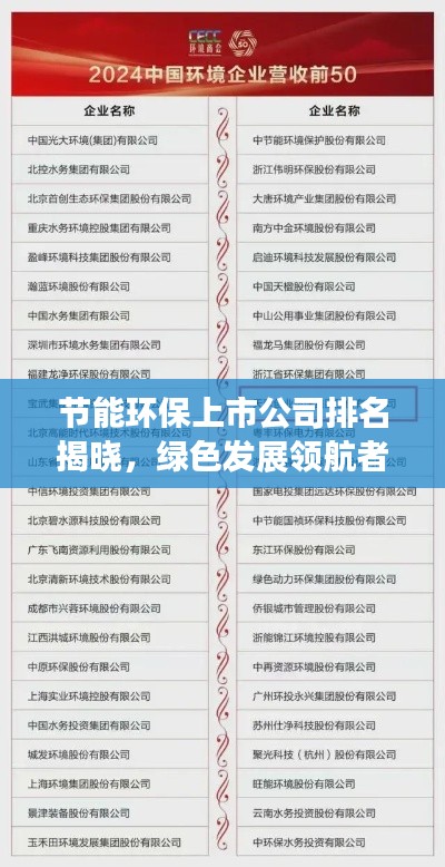 随着全球环保意识的逐渐增强,节能环保产业已成为各国经济发展的重要方向,在这一领域,上市公司凭借其强大的技术实力、资金支持和市场影响力,发挥着举足轻重的作用,本文将为您介绍节能环保上市公司的排名,揭示这些绿色发展的领航者。