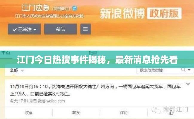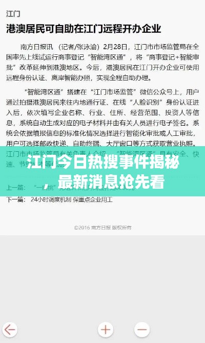 随着互联网的普及和社交媒体的兴起,各种新闻事件迅速传播,成为公众关注的焦点,我们将目光投向广东省的江门市,来看看江门今日的热搜事件最新消息。