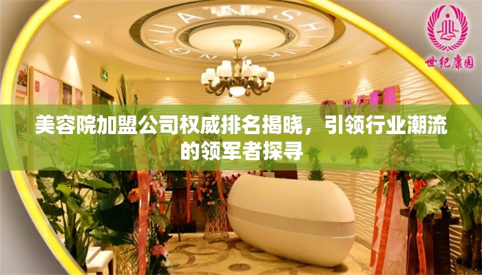在当今社会,美容行业持续繁荣,吸引了众多创业者的目光,对于想要通过加盟美容院来实现创业梦想的人来说,选择一个优秀的加盟公司至关重要,本文将为你揭示专注美容院加盟公司的排名,帮助你更好地了解行业内的领军者。