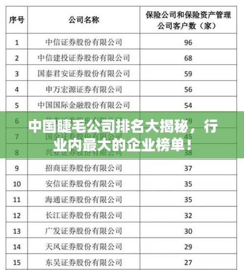 随着美妆行业的飞速发展,睫毛行业作为其中的细分领域也日渐受到关注,中国市场上涌现出了一批优秀的睫毛公司,它们凭借创新的产品设计、高质量的生产工艺和强大的品牌影响力,在中国睫毛市场上占据了重要地位,本文将为您介绍中国最大的睫毛公司排名,带您了解这一行业的领军企业。