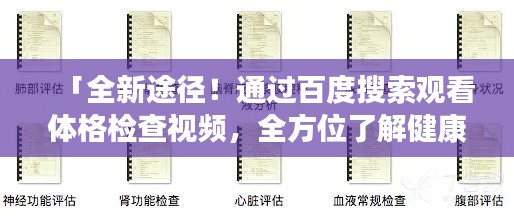 随着互联网的普及和数字化时代的来临,越来越多的人开始关注自己的健康状态,体格检查作为保持健康的重要手段之一,也逐渐受到广泛关注,通过百度搜索“体格检查视频”,可以轻松获取大量相关教学资源,让您全面了解健康状态的新途径,本文将介绍如何通过百度搜索获得这些宝贵的视频资源。
