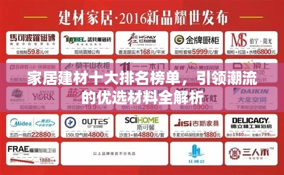 在家居装修过程中,选择优质的建材对于居住环境的舒适度和安全性至关重要,本文将为您介绍家居建材排名前十名,这些材料在品质、性能、美观等方面均表现出色,是引领行业潮流的优选材料。