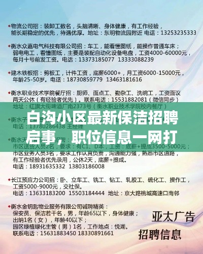 随着城市化进程的加快,小区保洁工作的重要性日益凸显,白沟小区作为城市的重要组成部分,对保洁服务的需求也日益增长,本文将为您详细介绍白沟小区保洁的最新招聘信息,欢迎广大求职者关注并踊跃报名。