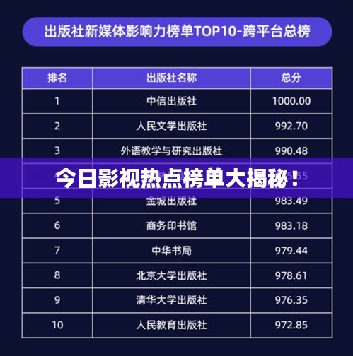作为观众,我们应该关注这些热点,了解最新的影视作品和行业动态,同时也要理性看待这些热点,不盲目追星,不盲目跟风,希望本文能帮你了解“今日影视热点榜单最新”的情况,让我们一起期待更多的精彩作品和行业动态吧!