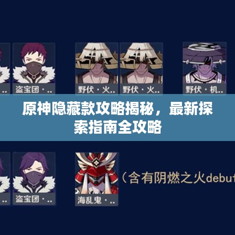原神的世界充满了未知和惊喜,本文为你揭示了最新的原神隐藏款攻略,包括角色、区域和活动等方面的内容,希望这些攻略能帮助你在提瓦特大陆上畅游,成为真正的探险家,随着游戏的不断更新,还会有更多的隐藏款和惊喜等待你去发现,保持关注,勇往直前,祝你在原神的世界中收获满满!