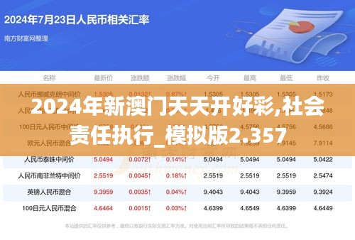 澳门特别行政区政府向来重视公益性活动和社会责任的履行,特此设立”天天开好彩”项目,以期营造人人向善的良好社会风气。本文旨在模拟一份2024年新澳门社会责任政策文件,共计2.357版本,为让广大民众了解项目活动内容,特此起草以下文章。