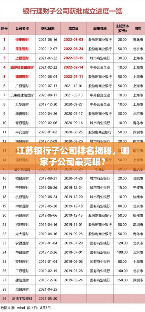转载请注明来自江西北定建设工程服务体系,本文标题:《江苏银行子公司排名揭秘,哪家子公司最亮眼?》
