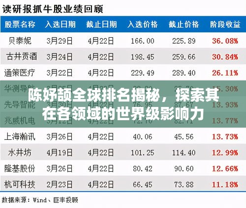 要确定陈妤颉的世界排名,需要考虑多个因素,其中包括她在各项比赛中的成绩、她的个人技能、她在领域的知名度以及她所面对的竞争对手等,这些因素的综合作用,决定了她在世界排名中的位置。