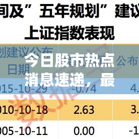随着全球经济的日益发展,股市成为了人们关注的焦点,本文将对今日股市的最新消息热点进行概述,为广大投资者提供及时、准确的信息,以便更好地把握市场动态。