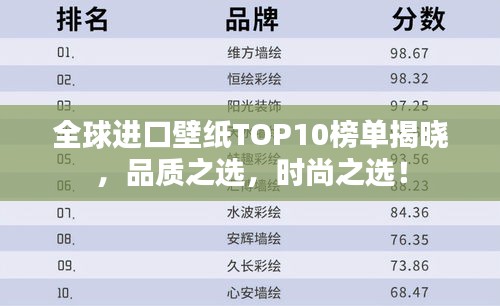 壁纸是现代家居装饰中不可或缺的元素之一,其材质、风格、色彩等多样化的特点深受消费者喜爱,在众多壁纸品牌中,进口壁纸因其卓越的品质和设计理念备受追捧,以下是进口壁纸排名前十名,让我们一起了解这些品牌的特点和优势。