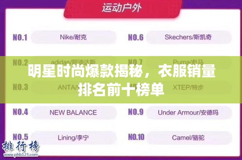 随着时尚产业的飞速发展,明星衣服已经成为大众关注的焦点,他们的穿着风格、品牌选择以及潮流引领力,在很大程度上影响着消费者的购买决策,本文将为您揭晓明星衣服销量排名前十名,带您了解当下最受欢迎的明星服饰品牌。