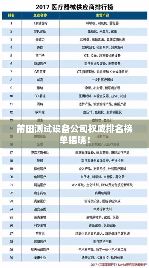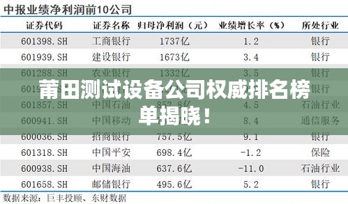 莆田,这座位于福建省的城市,近年来在测试设备领域涌现出了一批优秀的企业,这些公司在产品研发、技术创新、服务质量等方面表现出色,为莆田乃至全国的测试设备行业做出了重要贡献,本文将为您介绍莆田测试设备公司的排名,带您了解这些企业的风采。