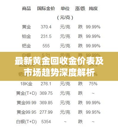 随着全球经济形势的不断变化,黄金作为一种重要的贵金属和投资工具,其价格和市场动态一直备受关注,特别是在当前的经济环境下,黄金回收市场的活跃度和价格波动更是引起了广大投资者的关注,本文将为您详细介绍今日黄金回收金价表最新信息,以及黄金回收市场的相关情况和趋势。