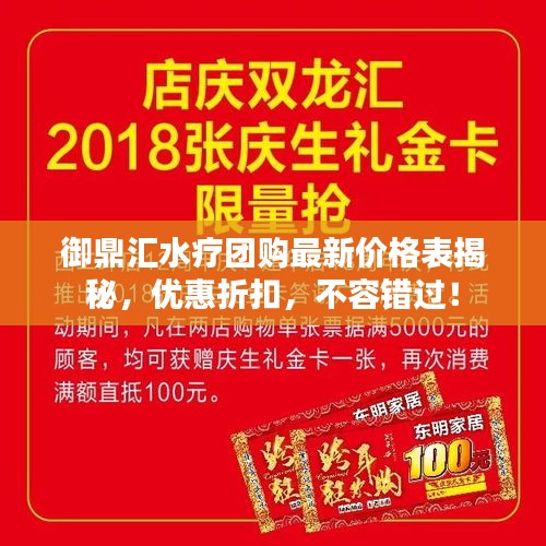 随着人们对休闲养生的需求日益增长,水疗作为一种时尚健康的休闲方式,受到了广大消费者的热烈欢迎,在众多水疗中心中,御鼎汇水疗以其优质的服务和专业的技术赢得了良好的口碑,本文将为您详细介绍御鼎汇水疗的团购价格表最新信息,带您了解这家水疗中心的魅力所在。