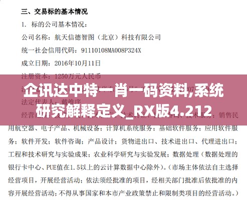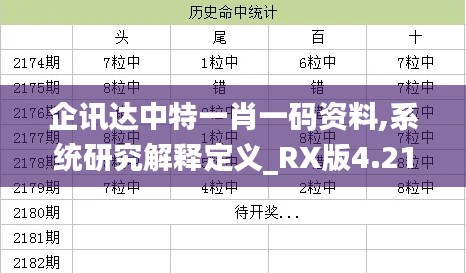 企讯达中特一肖一码资料是指企业在澳门地区开展业务时所需的一套标准化信息,它帮助企业更加便捷地理解和遵守澳门的政策法规。系统研究解释定义_RX版4.212是针对该资料进行系统性研究和解释的一个重要版本,旨在为企业提供清晰的指引,以促进澳门地区的经济活动和政策实施的有效性。