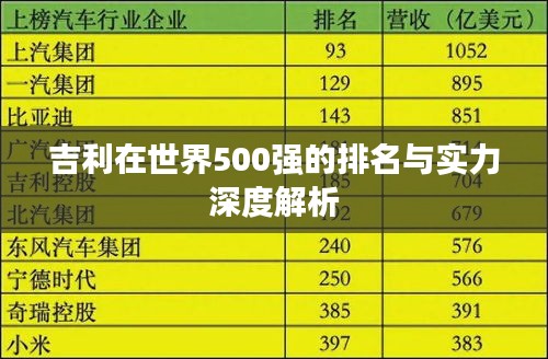 近年来,中国汽车产业的飞速发展引人注目,众多国内汽车企业逐渐崭露头角,吉利集团凭借其出色的业绩和创新实力,在世界范围内赢得了广泛的关注和赞誉,本文将深入探讨吉利在世界500强中的排名,以及其背后的实力和战略。