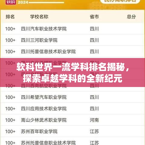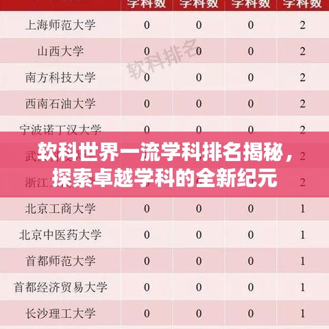 随着全球教育的快速发展,学科排名已经成为衡量学术水平、科研实力以及教育质量的重要指标之一,软科世界一流学科排名,作为其中的佼佼者,为学科评估树立了新的标杆,本文将围绕这一排名,探讨其在推动学科发展、提升教育质量以及引导学术潮流等方面的重要性。