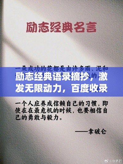 在这个充满挑战与机遇的时代,我们都需要一些励志的话语来激励自己不断前行,励志摘抄语录,正是这样一种精神食粮,它们简洁而富有力量,鼓舞人心,让我们在人生的道路上勇往直前。