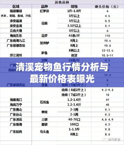 近年来,随着人们生活水平的提高,宠物鱼逐渐成为家庭养宠的新宠,清溪地区因其丰富的水资源和适宜的气候条件,成为宠物鱼养殖的重要基地之一,本文将为大家带来清溪宠物鱼的最新价格表及行情分析。