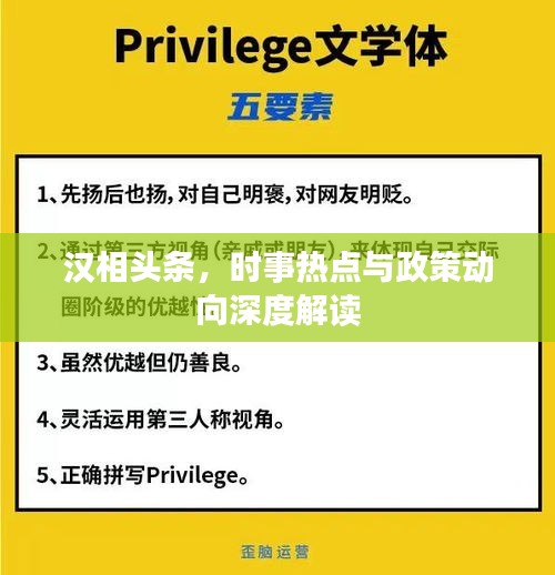 随着信息技术的飞速发展,新闻资讯已成为人们日常生活中不可或缺的重要部分,在这个信息爆炸的时代,汉相头条新闻以其独特的视角和深入的分析,成为广大读者获取最新时事信息、解读政策动向的重要平台,本文将为您带来最新的汉相头条新闻,让您了解国内外的时事热点和政策动态。