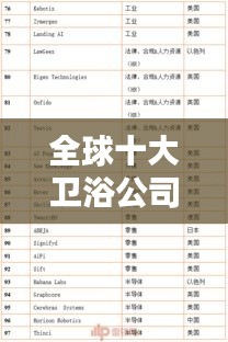 在当今卫浴市场竞争激烈的环境下,有一些公司凭借其卓越的产品质量、创新的设计理念和强大的品牌影响力脱颖而出,成为全球卫浴行业的佼佼者,我们将为您揭晓全球十大排名卫浴公司,带您领略这些引领行业潮流的领军企业。