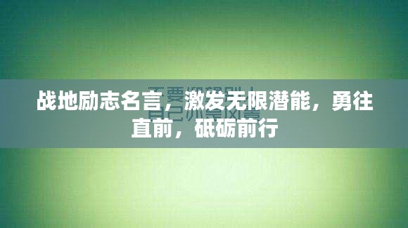 在人生的战场上,我们时常会遇到各种困难和挑战,为了激励自己不断前行,我们需要一些充满力量的励志语录来激发潜能,提振士气,本文将围绕“战地励志语录”这一主题,为你带来一篇鼓舞人心的文章。