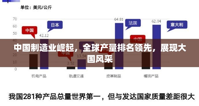 中国制造业产量的世界排名,可以从多个产品类别的统计数据中得到印证,钢铁、煤炭、水泥、家电、汽车等产业,中国的产量均位居世界前列,在高科技领域,如电子制造、新能源等方面,中国也取得了显著的成绩,据统计,中国已经成为全球制造业产值最高的国家之一,并在多个领域成为世界最大的生产国。