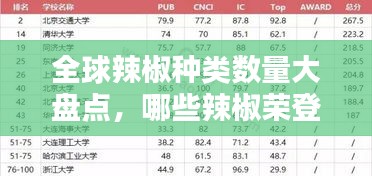 世界各类辣椒的数量排名是一个动态的过程,随着全球气候变化和人们饮食习惯的改变,各种辣椒的种植量和排名也可能发生变化,但无论如何,辣椒作为全球重要的调味料之一,其独特的辣味和丰富的种类将继续为人们的美食生活增添色彩。