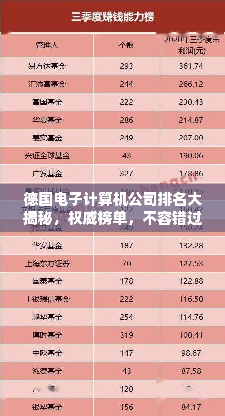 德国,作为欧洲的重要经济体之一,其在电子计算机领域的发展也是举世瞩目,众多优秀的电子计算机公司在德国崭露头角,为全球提供先进的技术与产品,本文将为您详细介绍德国电子计算机公司的排名及相关情况。
