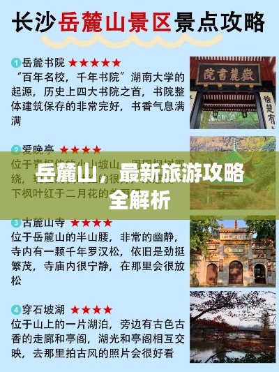 岳麓山位于中国湖南省长沙市,是一座自然风光与历史文化交织的山岳景区,这里不仅拥有迷人的山水景色,还承载着丰富的历史文化遗产,本攻略旨在帮助游客全面了解岳麓山的最新旅游信息,以便您能够充分享受这次旅行。