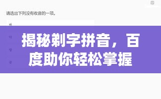在日常生活中,我们常常遇到一些汉字,不知道其准确的读音,这时,我们可以借助搜索引擎的力量,轻松找到答案,我们就以“剃字”的拼音为例,探讨一下如何使用搜索引擎解决这类问题。