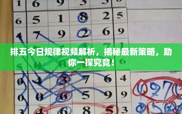 随着科技的进步和互联网的普及,各类彩票游戏的最新动态和规律分析成为了广大彩民关注的焦点,排五游戏作为一种深受欢迎的数字彩票游戏,其最新规律视频更是吸引了众多彩民的关注,本文将围绕“排五今日最新规律视频”这一主题展开分析。