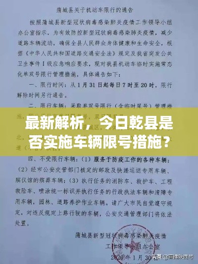 随着城市交通压力的日益增大,限号措施在许多城市已经实施,乾县作为一个发展中的城市,也可能面临类似的交通问题,本文将围绕“今日乾县限号吗最新”这一主题展开,为广大市民提供最新的限号信息以及相关的背景知识。