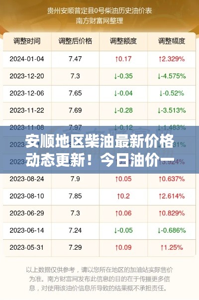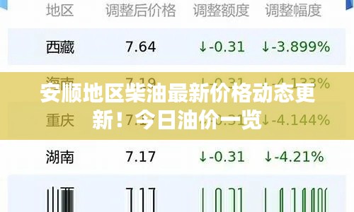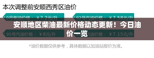 随着全球能源市场的不断变化,油价问题一直是公众关注的焦点,安顺地区作为中国西南地区的重要城市,其柴油价格变动也备受关注,本文将为您详细介绍今日安顺地区的柴油最新价格及相关信息。