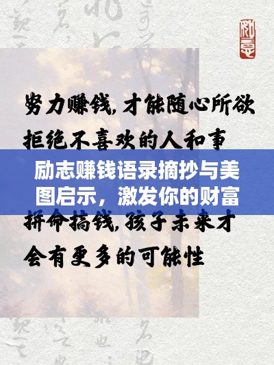 在这个充满挑战与机遇的时代,我们都在为了生活而努力赚钱,励志的赚钱语录不仅给予我们前进的动力,还能在困境中激发我们的斗志,本文将从多个角度分享励志赚钱的语录,并配以相关图片,希望能为大家带来正能量和启示。