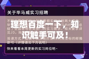 在这个信息化的时代,百度成为了我们获取信息的主要途径,我们也要树立远大的理想,为之努力,为之奋斗,而百度可以成为我们的得力助手,帮助我们更好地实现目标。“理想百度一下”,不仅是对百度的赞美和肯定,更是对我们生活的一种期待和向往,我们要与百度共同创造一个更美好的未来,让我们的生活更加美好,更加充实。