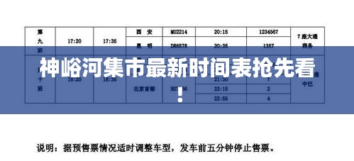 随着季节的变换和时间的推移,神峪河集市的时间表也在不断更新,本文将为您带来关于神峪河集市最新时间表的消息,以便您能够及时了解并参与到这一充满活力和热闹的市场中。