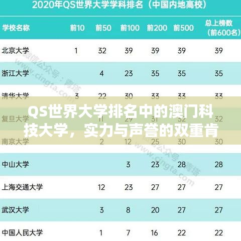 随着全球化的推进,教育领域的国际交流与合作日益频繁,世界大学排名已成为评估学校综合实力、教学质量和科研水平的重要指标之一,QS世界大学排名,作为最具有权威性和影响力的排名之一,为学生选择留学目的地提供了重要参考,本文将聚焦于QS世界大学排名中的澳门科技大学,探讨其在高等教育领域中的地位及贡献。