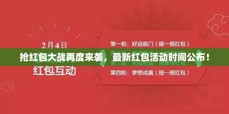 随着互联网的普及和移动支付的便捷,红包活动已经成为各大平台吸引用户的一种重要手段,每当临近节假日或者特殊时期,各大平台都会推出红包活动,吸引大量用户参与,我们将重点关注最新的红包活动时间,为广大网友提供一份详尽的抢红包攻略。