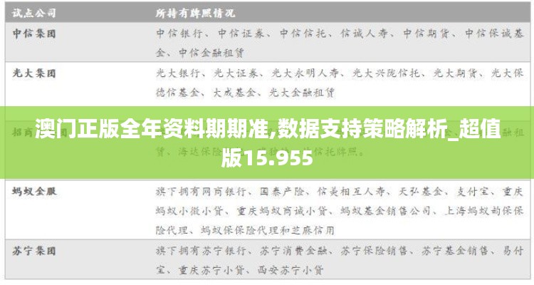 澳门特别行政区,作为中国的一个特别行政区,其政策文件的发布不仅关系到澳门本地居民的生活和经济活动,也对区域乃至国际社会产生深远影响。本期特推出《澳门正版全年资料期期准,数据支持策略解析_超值版15.955》,旨在为各方提供一个全面、权威的澳门政策资料手册,帮助读者深入了解澳门的政策导向、经济发展和社会动态。