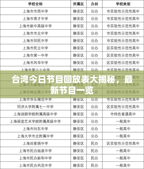 台湾,作为一个充满活力和多元文化的地区,其电视节目的丰富性和多样性一直备受关注,特别是“今日节目”,这类节目通常涵盖了时事新闻、文化娱乐、民生百态等多个领域,吸引了广大观众的关注,本文将围绕“台湾今日节目回放表最新”这一主题,介绍台湾最新的电视节目回放情况。